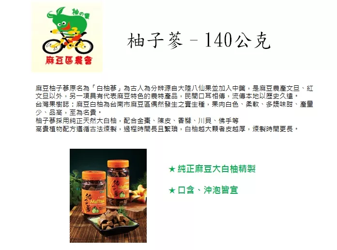 【台南麻豆區農會】柚子蔘–140公克 評價